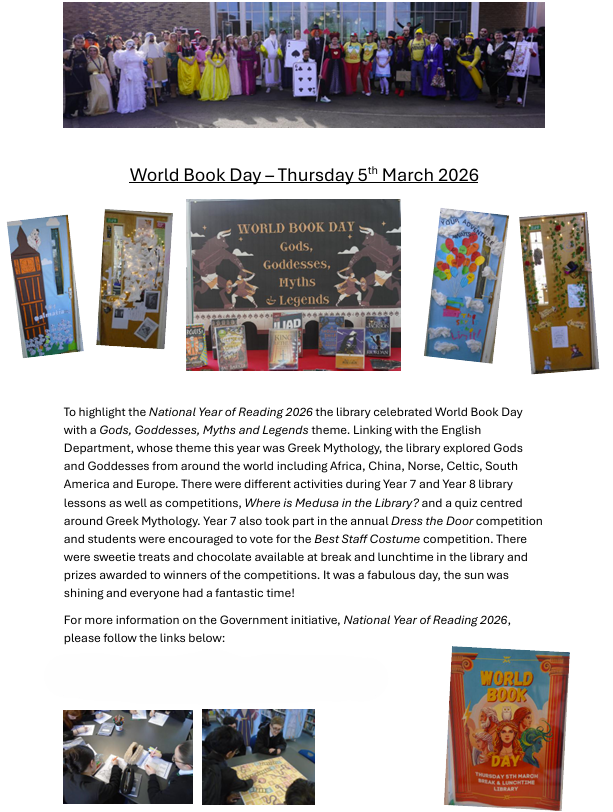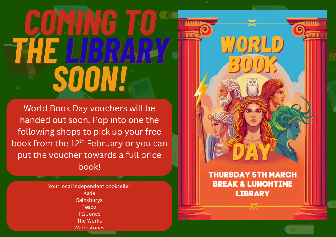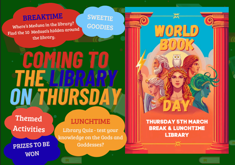 The library will be celebrating World Book Day during break and lunchtime, students are welcome to join in the various activities during break and lunchtime. We hope to see you there.