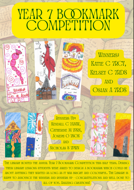 The Library’s annual Year 7 Bookmark Competition took place the first half of the Autumn term.