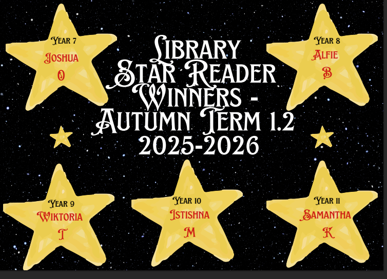 In a joint venture with the English Department, last term the Library launched a half termly competition to search for a ‘Star Reader’ from each year group. Staff have been asked to nominate a student who they feel is deserving of the award as they have demonstrated above and beyond perseverance and commitment in their reading.