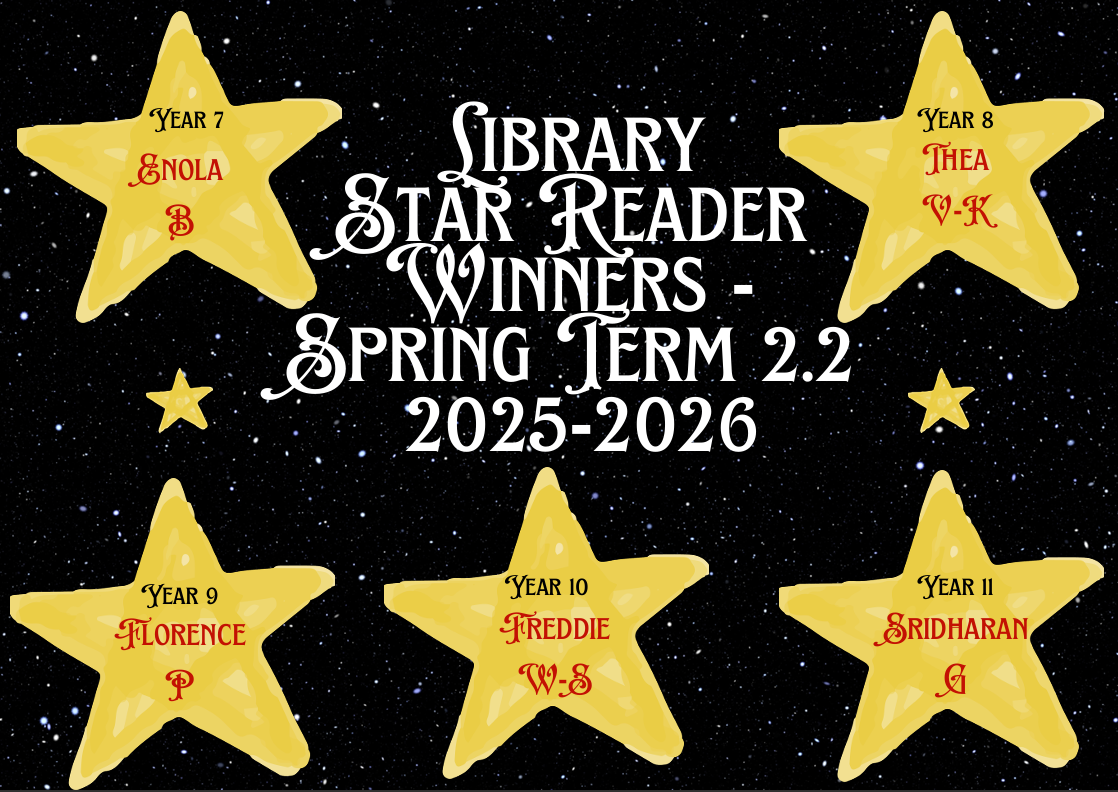 Congratulations to Mufaro in Year 8 who is the first winner of the Library's new competition which runs every half-term.