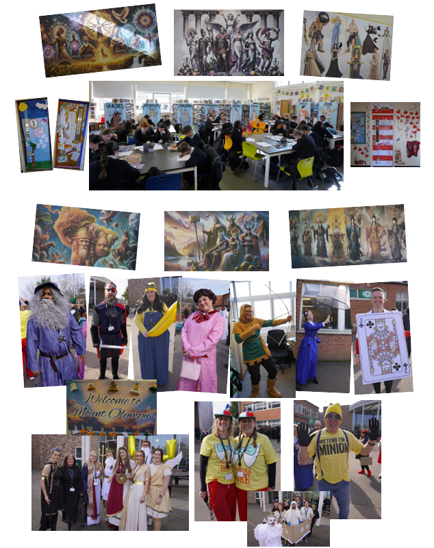 The World Book Day celebrations were even bigger and better this year! There were a great many activities throughout the day including: staff and some Post-16 students dressing up as various book characters, a number of Post-16 students dropping into classes to read excerpts from different books, WBD themed activities taking place in various classes including Year 7 and 8 Library lessons, Year 7 ‘Dress the Door’ competition, ‘Staff Dress Up’ competition where students had to name as many dressed up staff/Post-16 students they could find and also a WBD Bookmark competition.