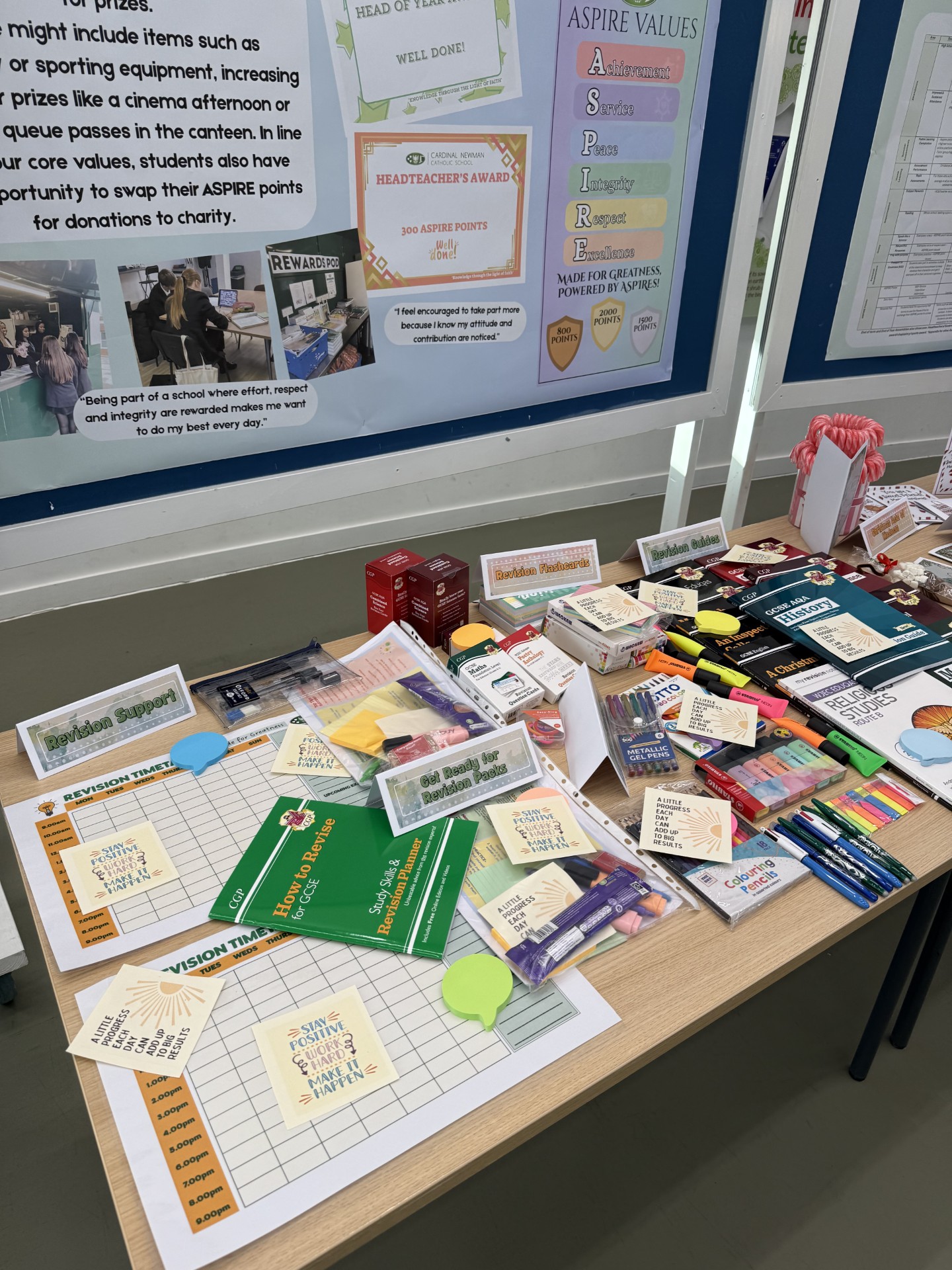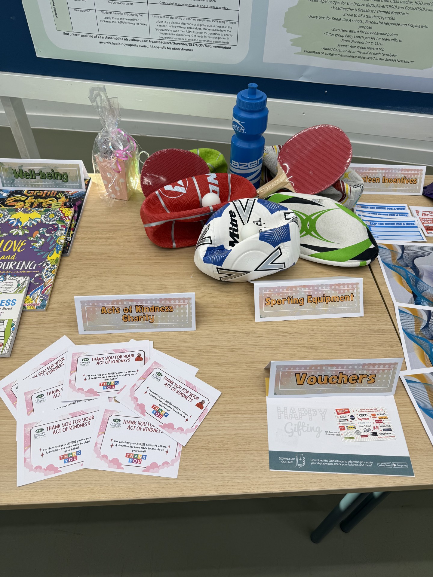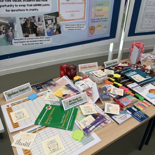 These might include items such as stationery or sporting equipment, increasing to larger prizes like a cinema afternoon or skip the queue passes in the canteen. In line with our core values, students also have the opportunity to swap their ASPIRE points for donations to charity.